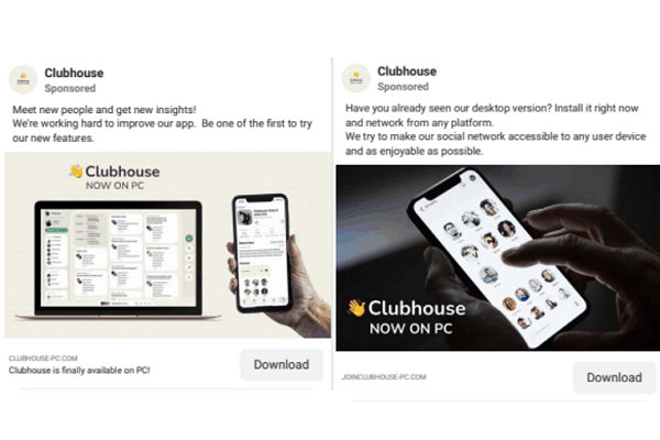 والآن تظهر إعلانات لنسخة سطح المكتب من كلوب هاوس وهي نسخة وهمية في الواقع غير موجودة ولم تصدرها الشركة تروج لها صفحات تحمل اسم التطبيق نفسه.