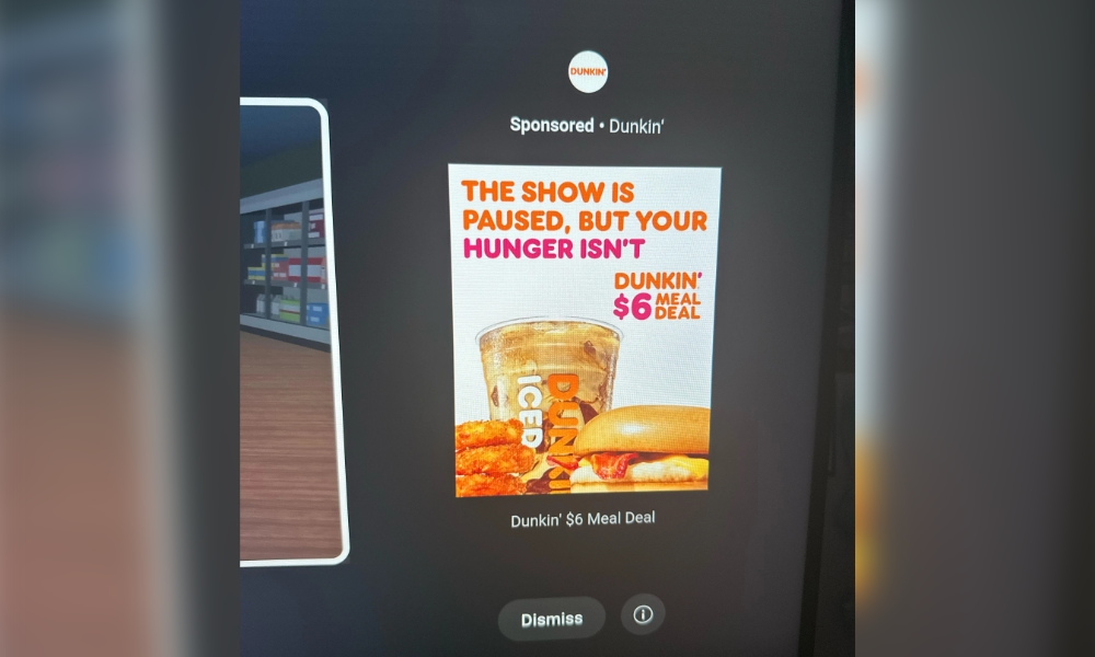 عندما يتم إيقاف مقطع فيديو مؤقتًا، يتقلص حجمه لاستيعاب نافذة الإعلان على الجانب الأيمن من الشاشة، مما يسمح للمستخدمين برفض الإعلان دون استئناف التشغيل.
