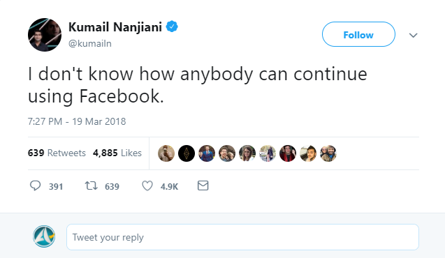 ما يحدث بالوقت الحالي هو فرصة مثالية من أجل اتخاذ هذا القرار وترك شبكة إجتماعية صممت في الأساس للتواصل وتعزيزه لكن اكتشف الناس أنها تتعامل مع المستخدمين كسلعة وكبضاعة هي التي تختار أين تضعهم وما الذي سيشترونه وما الذي سيفعلونه وما هي الأفكار التي سيؤمنون بها.