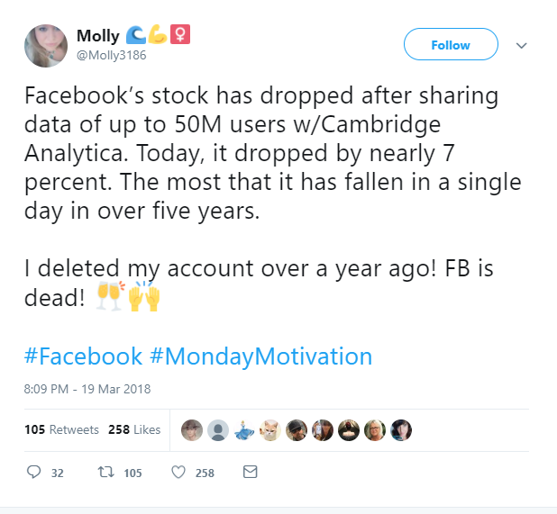 قيام فيس بوك ببيع بيانات 50 مليون مستخدم إلى شركة استشارات سياسية استغلتها في دعم دونالد ترامب بالإنتخابات الرئاسية الأمريكية لعام 2016 زاد الطين بلة.