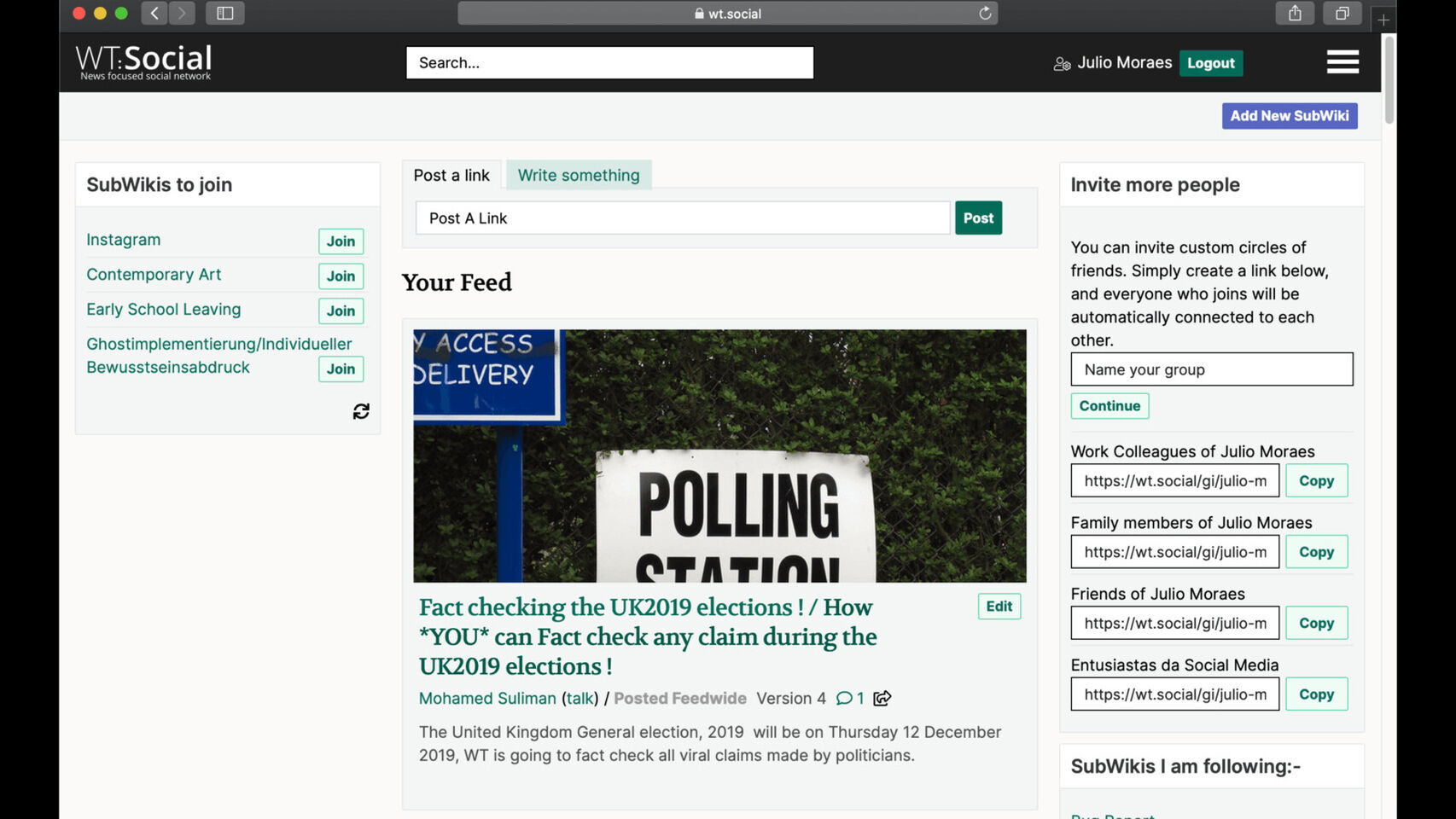 ترقية WikiTribune إلى WT: Social