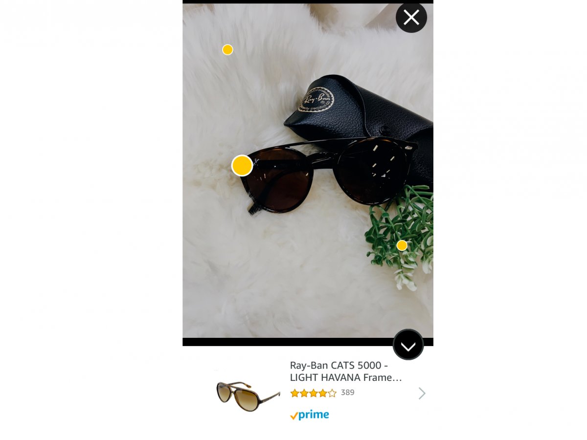 عند معاينة صورة توجد بها نظارة متاحة على أمازون أو منتج معين يظهر هذا المنتج في أسفل الصورة.