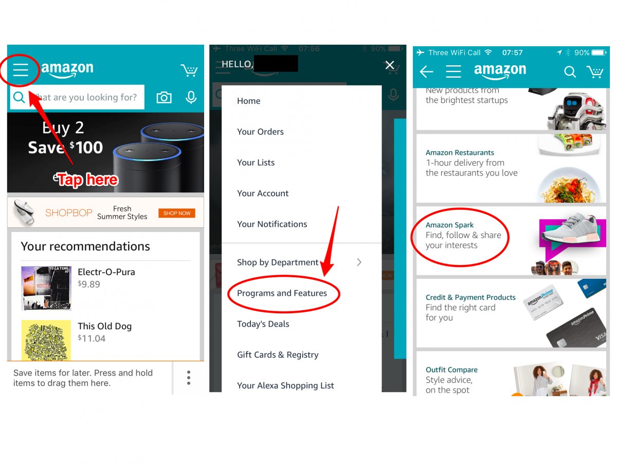 بعد تنزيل التطبيق الرسمي لأمازون وتنصيبه على جهازك يمكنك الولوج إلى هذه الميزة “حاليا غير متوفرة سوى في أمريكا” من خلال الضغط على أيقونة القائمة والتي ستجد ضمنها العديد من الخيارات إضغط على Programs and Features.