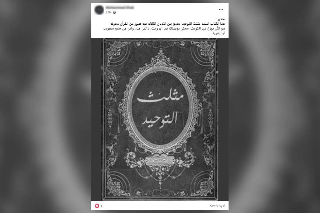 هذا يعني أن جزءًا من الالتباس سببه أن عنوان “مثلث التوحيد” موجود أصلًا على الإنترنت كاسم كتاب آخر غير ديني، وهو أمر مختلف تمامًا عن الروايات المتداولة حول “مصحف محرّف”.