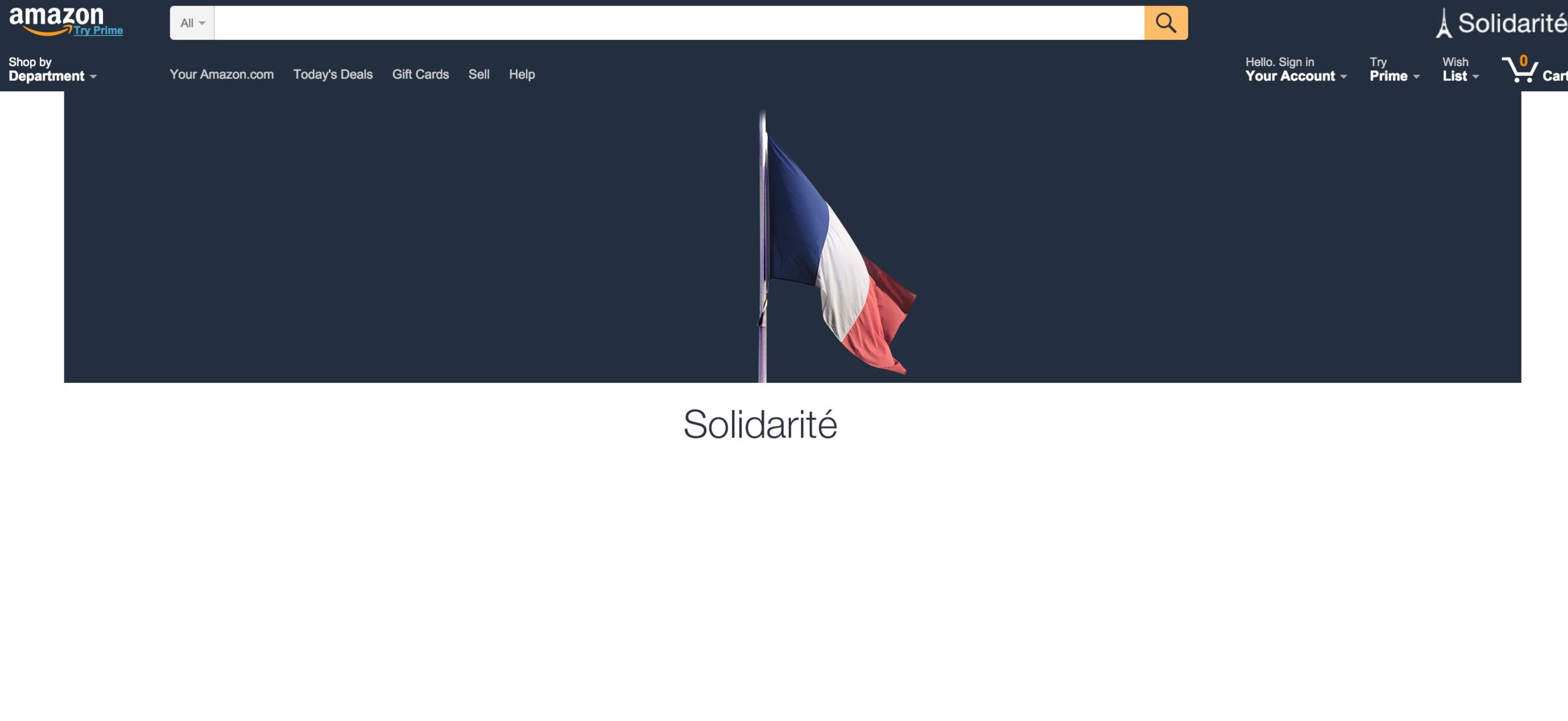 أقدم أمازون على وضع صورة العلم الفرنسي في الرئيسية تعبيرا على تضامن الشركة مع ضحايا الحادث، بينما ذهب يوتيوب لاستغلال الحدث من خلال مزج شعاره بالعلم الفرنسي و أيضا توجيه الناس إلى أحدث الفيديوهات التي تخص هذا الحدث.