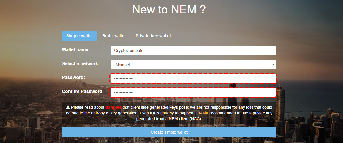 بعد تنزيل المحفظة وفتحها سيكون عليك اختيار اسم خاص لها وكلمة مرور، احرص على أن تكون كلمة مرور غير متداولة وخاصة بك ولا تستخدمها في المواقع التي أنت مشترك بها.