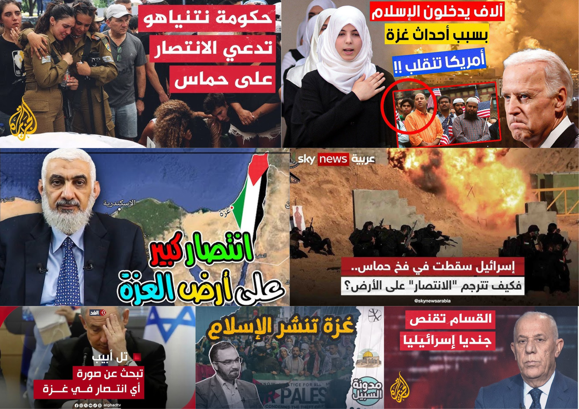 ويركزون على جلب الأخبار التي تبين وكأن حماس تتقدم أو تفضح تقاعس ايران عن دعم الحركة الإسلامية في القطاع أو تسلط الضوء على جهود مصر والدول العربية لإيصال المساعدات وإيقاف الحرب.