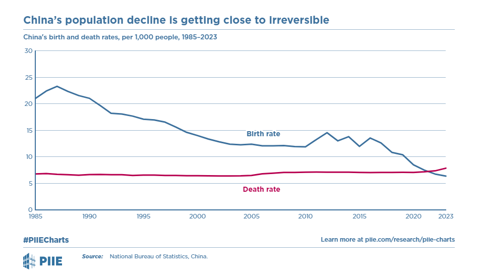 يُترجم عدد المواليد الذي يبلغ حوالي 9 ملايين تقريبًا إلى معدل خصوبة إجمالي الذي يبلغ حوالي 1.0 في الصين، أو بعبارة أخرى، تتجه الصين في اتجاه كوريا الجنوبية (مع معدل إجمالي معدل الخصوبة يقدر بـ 0.72 في عام 2023) وتواجه انخفاضًا سكانيًا أسوأ بكثير من اليابان، التي بدأت تحولها الديموغرافي في وقت أبكر بكثير من غيرها في شرق آسيا في العالم.