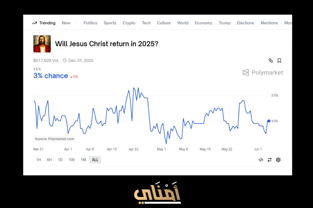 هناك حاليًا أكثر من نصف مليون دولار رهان على حدوث المجيء الثاني في عام 2025، على الرغم من أن الغالبية العظمى من الأموال التي تم وضعها ذهبت إلى كومة “لا”.