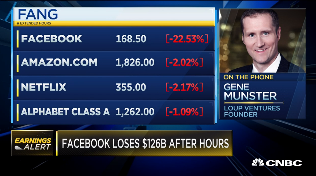 في هذا الصدد ينصح السيد Gene Munster المهتمين بالإستفادة من الأزمة الحالية بالإبتعاد في الوقت الحالي عن أسهم فيس بوك، وهو الذي يتكلم نيابة عن مؤسسة الأبحاث Loup Ventures.